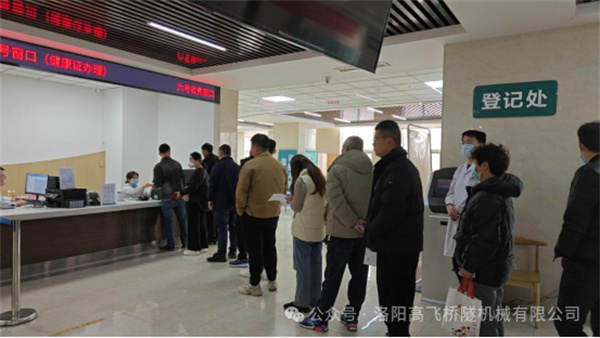 為了確保體檢活動(dòng)的順利進(jìn)行,公司人事行政部提前與洛陽市第六人員醫(yī)院體檢科進(jìn)行聯(lián)系為高飛橋隧開通員工體檢綠色通道,避免長時(shí)間的排隊(duì)等待,使員工能盡快完成體檢。